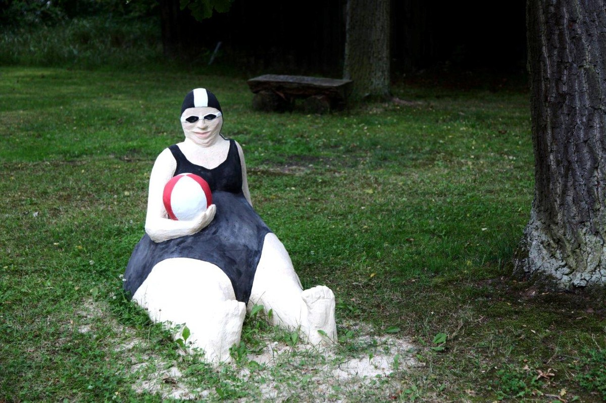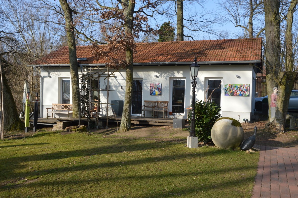 In einem Nebengebäude befindet sich eine Künstlerwerkstatt, hier entstehen unsere Betonskulpturen, außerdem werden gerade die wunderschönen Bilder des Malers Horst Schmied ausgestellt (Link s.u.).